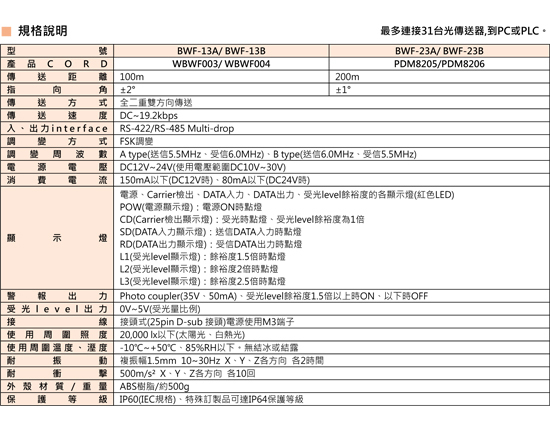 ‧RS-232C與RS-422雙介面,另RS-485,Current loop 多段頻率機