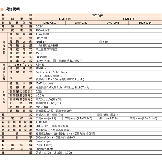 ‧為小型光傳送器8bit I/O並列信號,內部並可記憶100筆(可擴增)