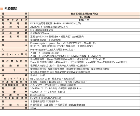 ● 檢出區域的設定電腦(RS‐232)可設置簡易模