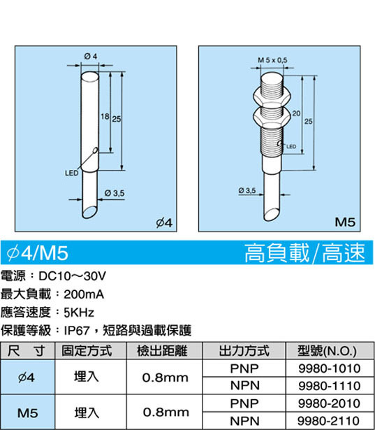 Φ4/M5近接開關(高負載/高速)