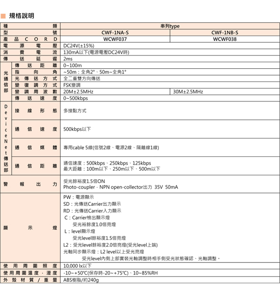 DeviceNet幹線中可設光傳送器於地上側與台車側連結遠端設備