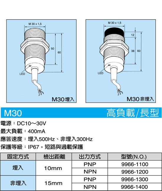 M30近接開關(高負載/長型)