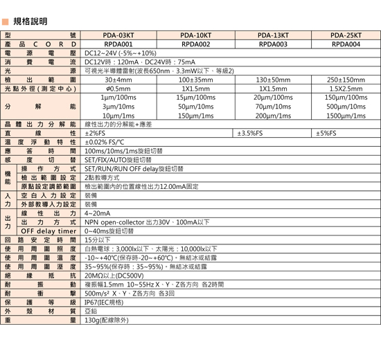 ● 受光速子採用PSD(光位置檢出素子)可高精度判