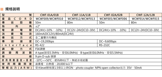 ‧傳送距離50m、80m、150m中距離傳送,可使用中、小型自動倉庫